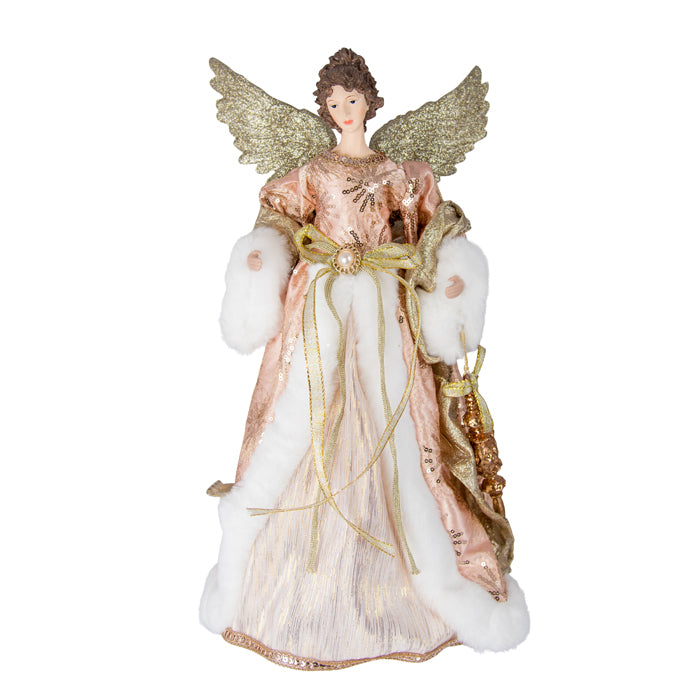 Adorned in beautiful pink hues, this angel brings a fresh and contemporary twist to traditional Christmas colours. The soft pink fabric, possibly accented with subtle embellishments or glitter, gives her an ethereal and enchanting glow. Her delicate wings, likely crafted from complementary fabric or fine mesh, fan out gracefully, enhancing her angelic form.