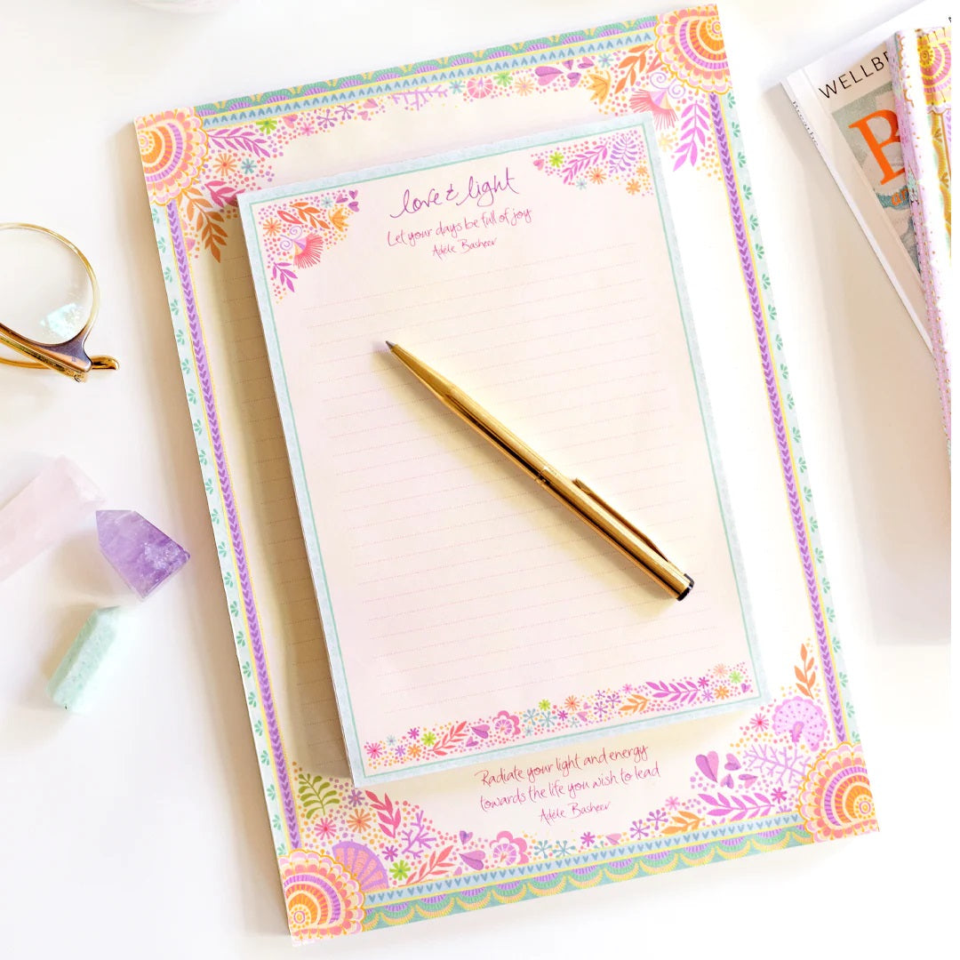 Pen your thoughts, compose that letter or plan for the day, with Intrinsic's Love & Light A5 Lined Notepad.