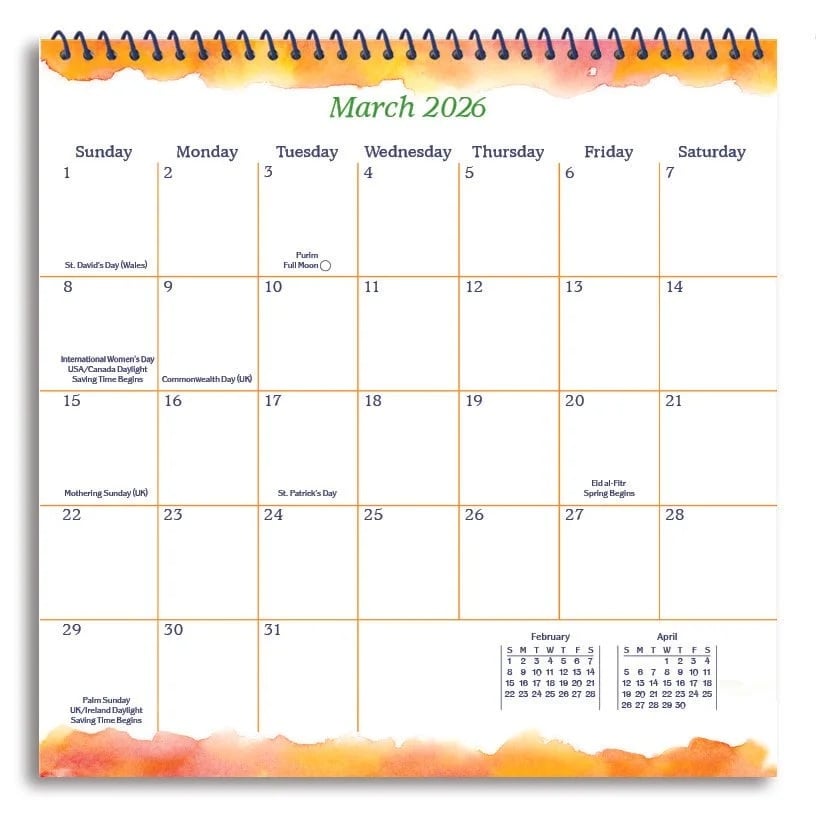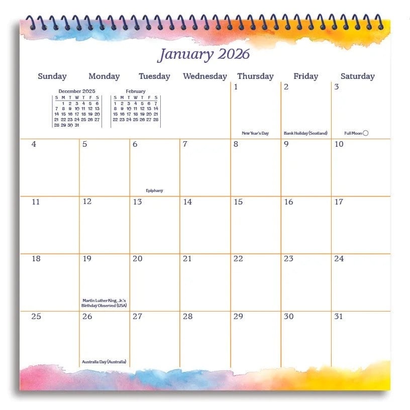 Format: 2026 12-Month Hanging Wall Calendar