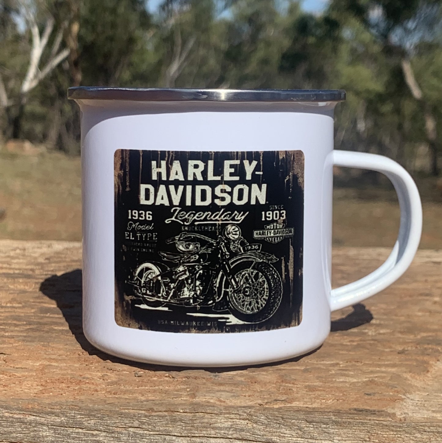 350ml Enamel Camping Mug features a heavey weight steel core coated in a thick layer of enamel with a smooth stainless lip edge.