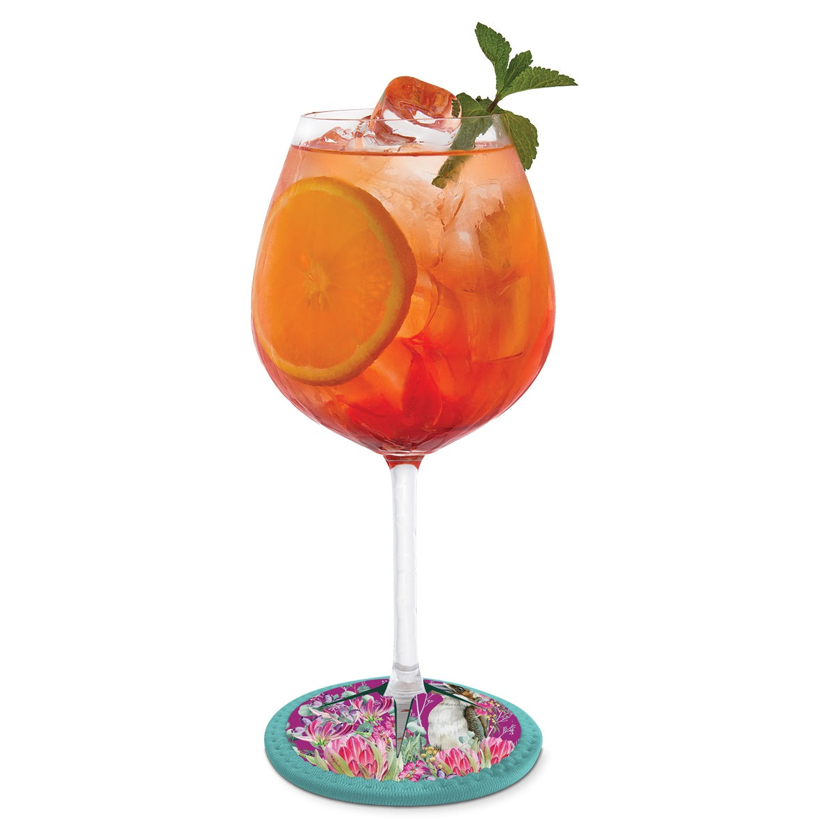 Measuring 9cm in diameter this neoprene wine glass coaster will stop condensation from wetting your table and linen. Slip the base of your glass through the centre section.